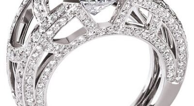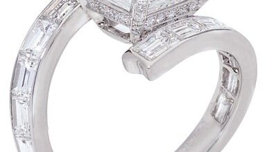 Anillo inspirado en Venecia, diseñado en platino con diamantes redondo de 0,30 y 0,50 quilates.