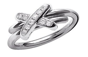 Anillo de 18 quilates, de oro blanco con diamantes cruzados.