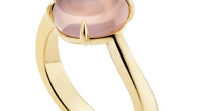 Anillo "Sassi Cabochon", diseñado en oro amarillo con cuarzo rosa en el centro.