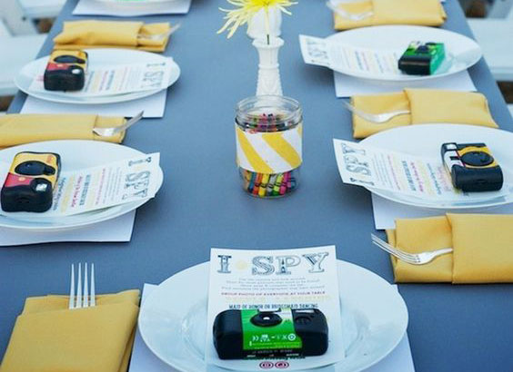 Es una opción sencilla pero que dará buenos resultados. La idea es dejar en cada mesa una cámara desechable para que vayan haciendo fotos a lo largo del convite y, de esta forma, no perder ni un detalle de lo que ocurrió en cada mesa, ¡aunque no estuvieses allí!