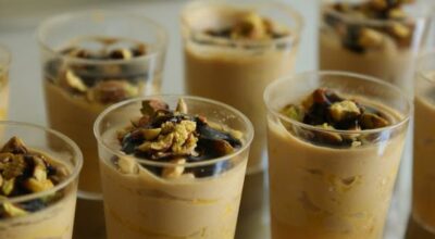 – Vasitos de cristal con distintas salsas y cremas