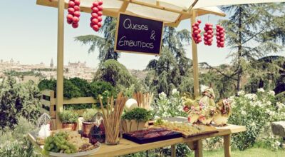 La mejor opción es hacer el aperitivo en el mismo lugar que la comida o la cena, preferiblemente en un exterior. Si el lugar donde vais a celebrar el banquete cuenta con jardines, patios o porches ¡será perfecto! Se puede preparar un buffet informal previo a la comida o cena o un catering en el que los camareros vayan ofreciendo algo de picar a los invitados mientras disfrutan de un momento de charla informal.