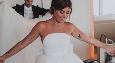 Tanto Aida como Alba reflejaron totalmente su personalidad a la perfección con sus looks de boda. Aida siempre había soñado con un vestido de princesa y la firma Ze García lo hizo realidad con un diseño formado con capas y capas de tul. Aún así, para el banquete Aida se cambió y lució otro diseño de Ze García de encaje y con la espalda al aire. Alba, por su parte, escogió un traje en blanco con una camisa muy escotada.