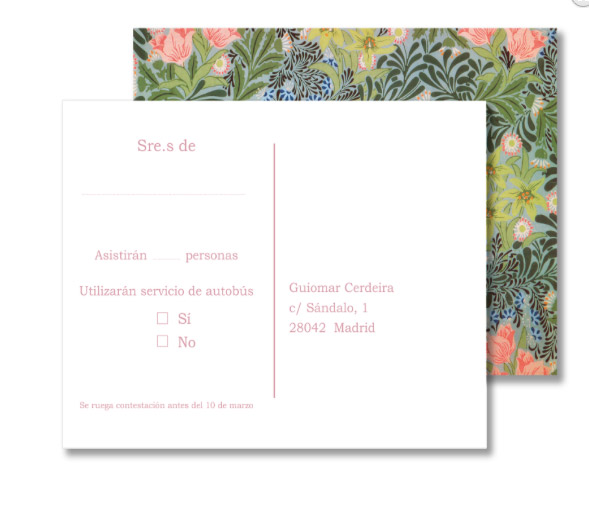 Si no queremos que falte ni un solo detalle en nuestra boda, no tiene sentido descuidar la comunicación. Por protocolo, sería conveniente enviar una tarjeta aparte de la invitación para que los invitados puedan confirmar o rechazar la invitación. Estas tarjetas se conocen también con el acrónimo en francés RSVP (Répondez s’il vous plaît). En la tarjeta, podremos incluir dos casillas junto a NO y SÍ para que nuestros invitados puedan confirmar la invitación. Por cortesía, sugerimos enviar también un sobre a juego con la tarjeta de respuesta, con sello, para facilitarles a los invitados el envío de su contestación.