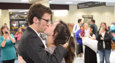 Una pedida de mano llena de ternura: sorprende a su chica en el aeropuerto con canciones románicas