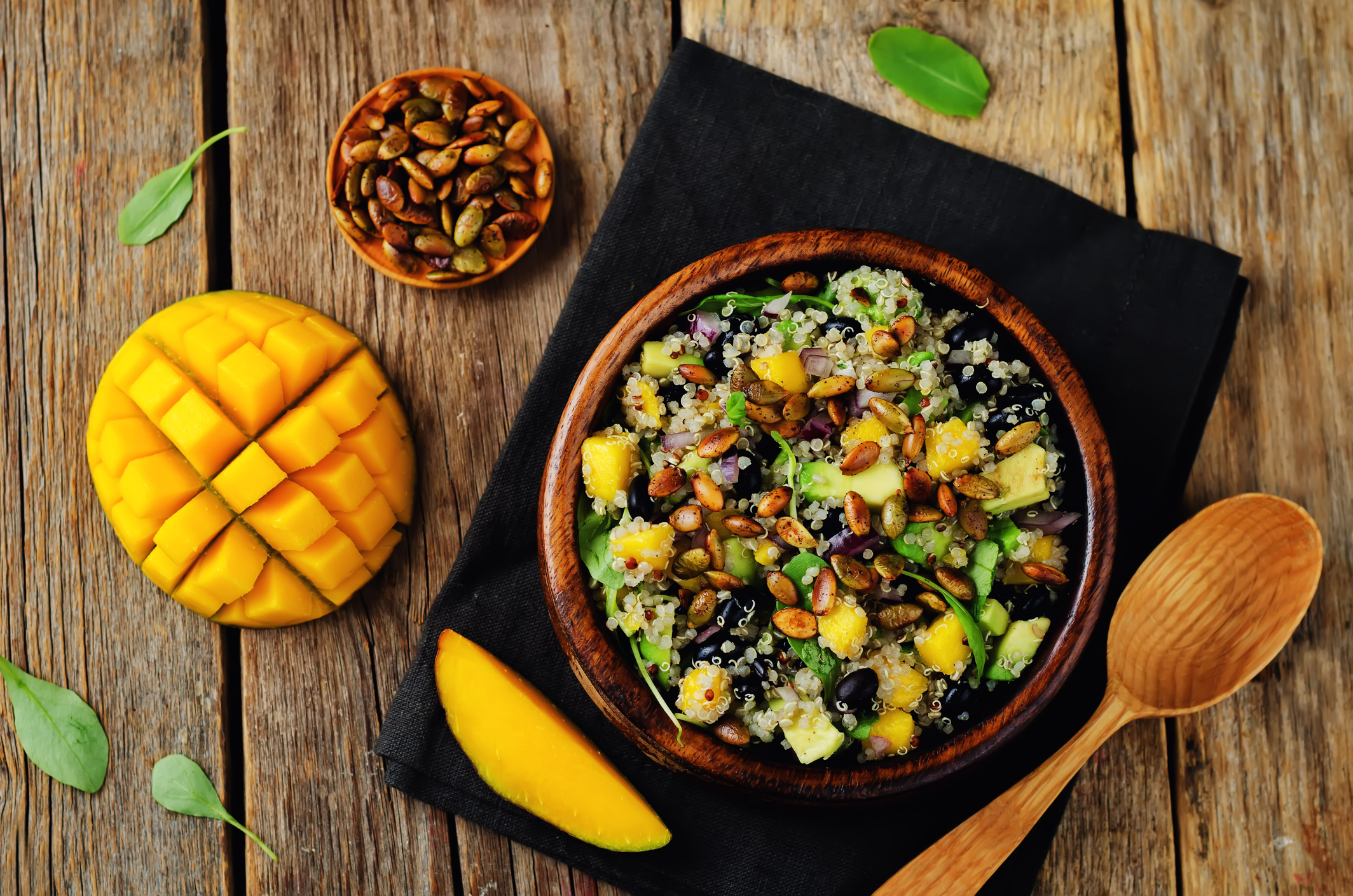 9. ¿Cómo hacer una ensalada de quinoa con pollo, mango y canónigos?