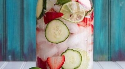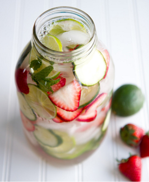 Agua de fresa, lima, pepino y menta para hidratarte desde el interior