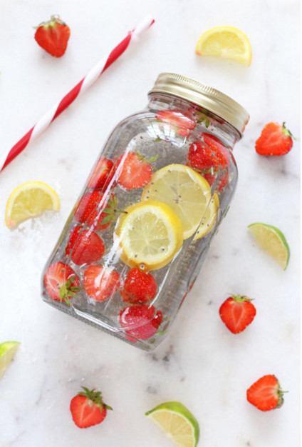 Agua de chía, fresa y limón, llénate de enrgía