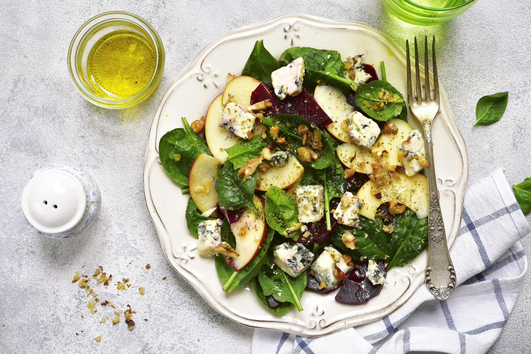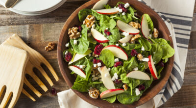 1. Ensalada de brotes, manzana, nueces y queso feta