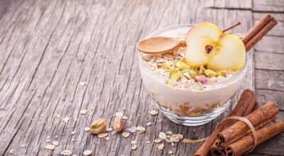 6. Retirar y añadir en el bol junto a la manzana y el yogur. Espolvorear el coco rallado y servir.