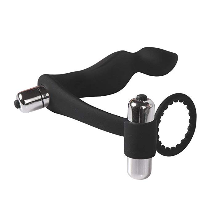 Juguete 2 en 1: vibrador anal con balita vibradora y con anillo vibrador todo en uno.