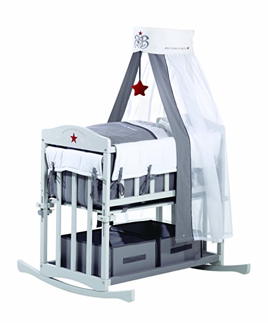 Esta minicuna es simplemente maravillosa. Tiene una multifunción, para que cuando ya no le sirva a tu bebé como cuna, le quites los barrotes y quede como un banco/sofá para la habitación. Además incluye la ropa de cama y un dosel muy bonito. ¿Lo mejor? Que tiene una balda inferior de almacenaje con cajas.