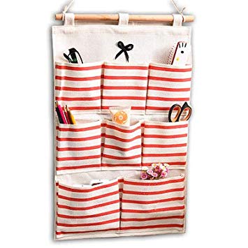 Otra de las ideas que te sugerimos es colocar los productos y accesorios del bebé en este organizador que se cuelga de la pared de tela en lino y algodón. Nos parece ideal y está disponible en dos colores.