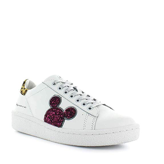 Estas zapatillas de Master of Arts son el colmo de los caprichos para los amantes de Mickey. Su diseño clásico es acompañado por un logo de Mickey en lentejuelas y un forro en la parte trasera de piel con estampado animal print. Cordones en algodón lurex plateado. ¡Demasiado bonitas para ser reales!