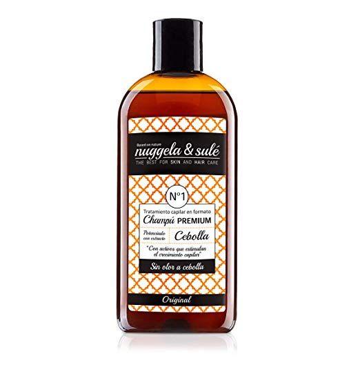 Nuggela & Sulé – Champú con extracto de cebolla premium: el champú de cebolla más conocido y más vendido es, sin duda, este de la marca Nuggela & Sulé. El efecto del extracto de cebolla roja está potenciado con glucógeno marino, que aporta energía al cabello, y sales del mar Muerto, ricas en oligoelementos como el Zinc. Ayuda a fortalecer los folículos para acabar con el pelo fino, quebradizo y con tendencia a la caída excesiva. Libre de parabenes.