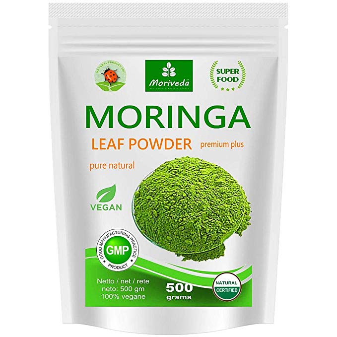 Otra forma muy común de consumir la moringa es el polvo, de forma que puedes añadirla a tus batidos o zumos diarios y consumirla de una forma natural. Este polvo está compuesto 100% de hoja de Moringa triturada y es completamente vegano y sin gluten. El envase tiene cierre hermético y contiene 500 gr.