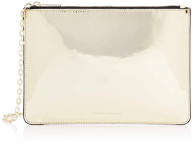 ¿Estás lista para brillar? Este clutch de Armani de piel sintética en dorado con efecto metalizado nos ha cautivado, sin duda.