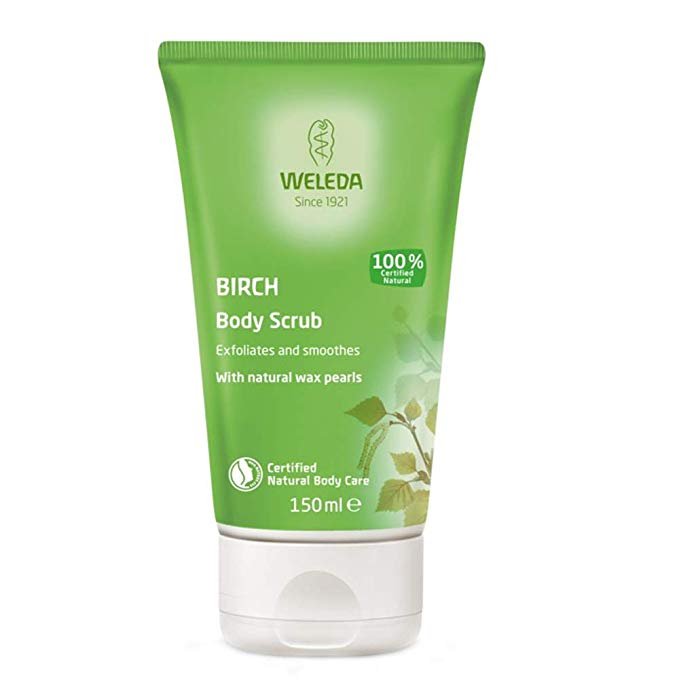 Weleda, exfoliante natural de abedul: realizado con aceites naturales de sésamo y pequeños huesos naturales de melocotón y cítricos. Evita y previene la descamación de la piel, limpia en profundidad los poros y previene la aparición de acné. Aplicar bajo la ducha con un ligero masaje de movimientos circulares. Se recomienda su uso una vez por semana