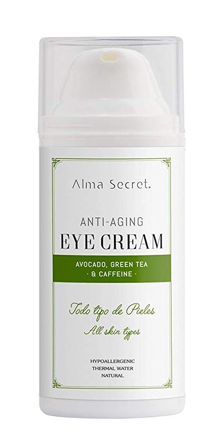- Alma Secret – Contorno de ojos antiedad: si eres amante de la cosmética natural, no puedes perderte este contorno de ojos de la marca Alma Secret. Está hecho con ingredientes naturales como la cafeína, el aguacate y el té verde. La cafeína y el té verde son capaces de fomentar la circulación sanguínea y disminuir la inflamación de las bolsas. El aguacate, por su parte, nutre en profundidad la delicada piel del contorno de ojos para que los signos de la edad no hagan su aparición. Puedes comprarla en Amazon por 24€.