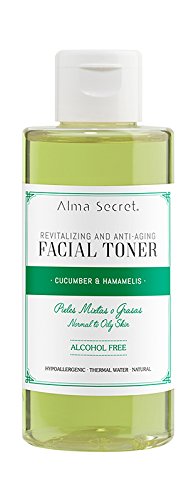 Alma Secret Facial Toner: se trata de un limpiador muy completo gracias a sus propiedades antisépticas, cicatrizantes, purificantes y seborreguladoras que controlan el exceso de grasa de la zona T. Formulado con Extractos Botánicos, Pepino e Hidrolato de Hamamelis que cerrarán los poros, calmarán la piel y la mantendrán libre de toxinas. El polvo de Arrurruz Caribeño absorbe los brillos faciales. Una fórmula suave y libre de ingredientes artificiales (parabenos, aceites minerales, parafinas, ftalatos, etc), no contiene alcohol y no reseca. Comprar en Amazon por 19,69€