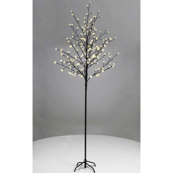 Este árbol tiene integradas luces LED de color blanco cálido en todas las terminaciones que son flores de cerezo.
