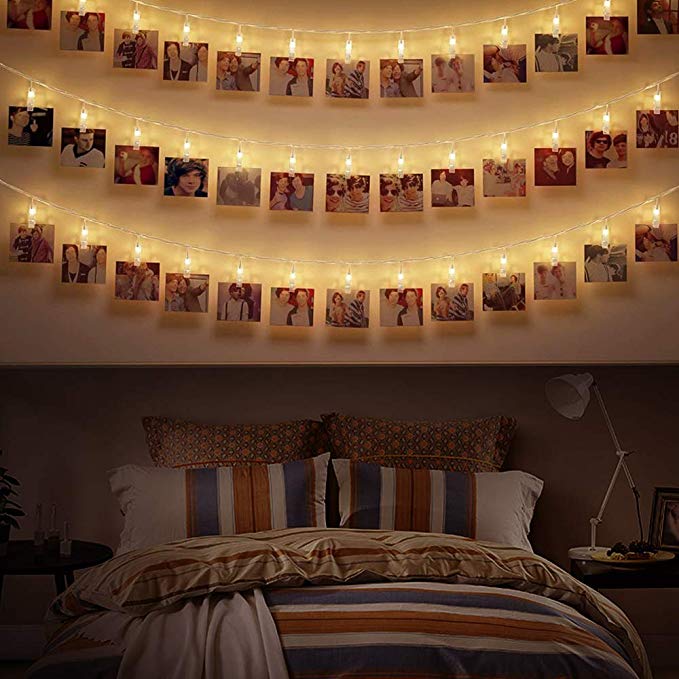 Esta es una tira de clips con luz LED para colgar tus fotos preferidas en la pared de tu habitación.