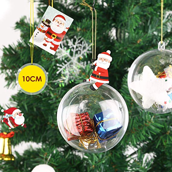 Estas bolas transparentes son perfectas si quieres innovar en la decoración navideña. Son esferas huecas de 10 cm de diámetro que se abren para que puedas llenarlas con tu decoración preferida, incluso puedes personalizarlas para hacerle un guiño a tus familiares. Llénalas con fotos, mensajes de Navidad, confeti, golosinas…las posibilidades son infinitas.