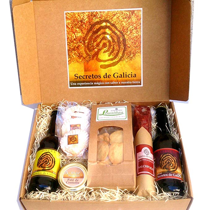 Incluye: paté de marisco, tostas de pan mariñeiro, salchichón de la montaña, galletas peregrinas del almendra y 2 cervezas artesanas gallegas.