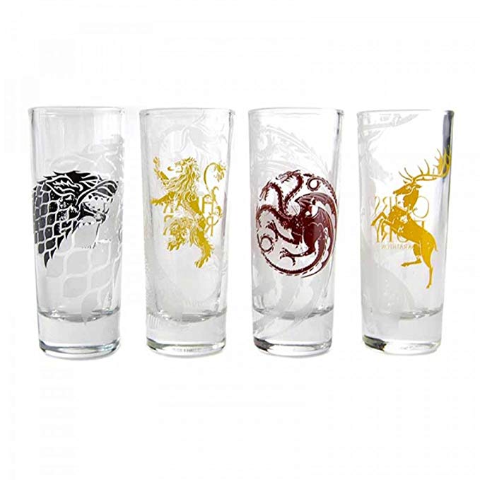¿Y dónde ibas a beber esos licores mágicos sino es en estos vasos de chupito de Juego de Tronos? Son cuatro vasos con el emblema de las cuatro casas más importantes: Stark, Targaryen, Lannister y Baratheon. Una chulada que los amantes de la serie seguro que saben apreciar.