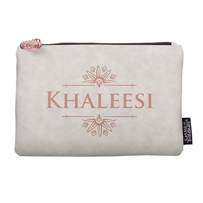 Lleva a todas partes el maquillaje, tus bolígrafos o lo que se te ocurra con este bonito y original neceser ambientado en Khalessi, con el emblema la casa Targaryen en la parte posterior y en el cierre de la cremallera, de color oro rosa. ¡Muy chic!