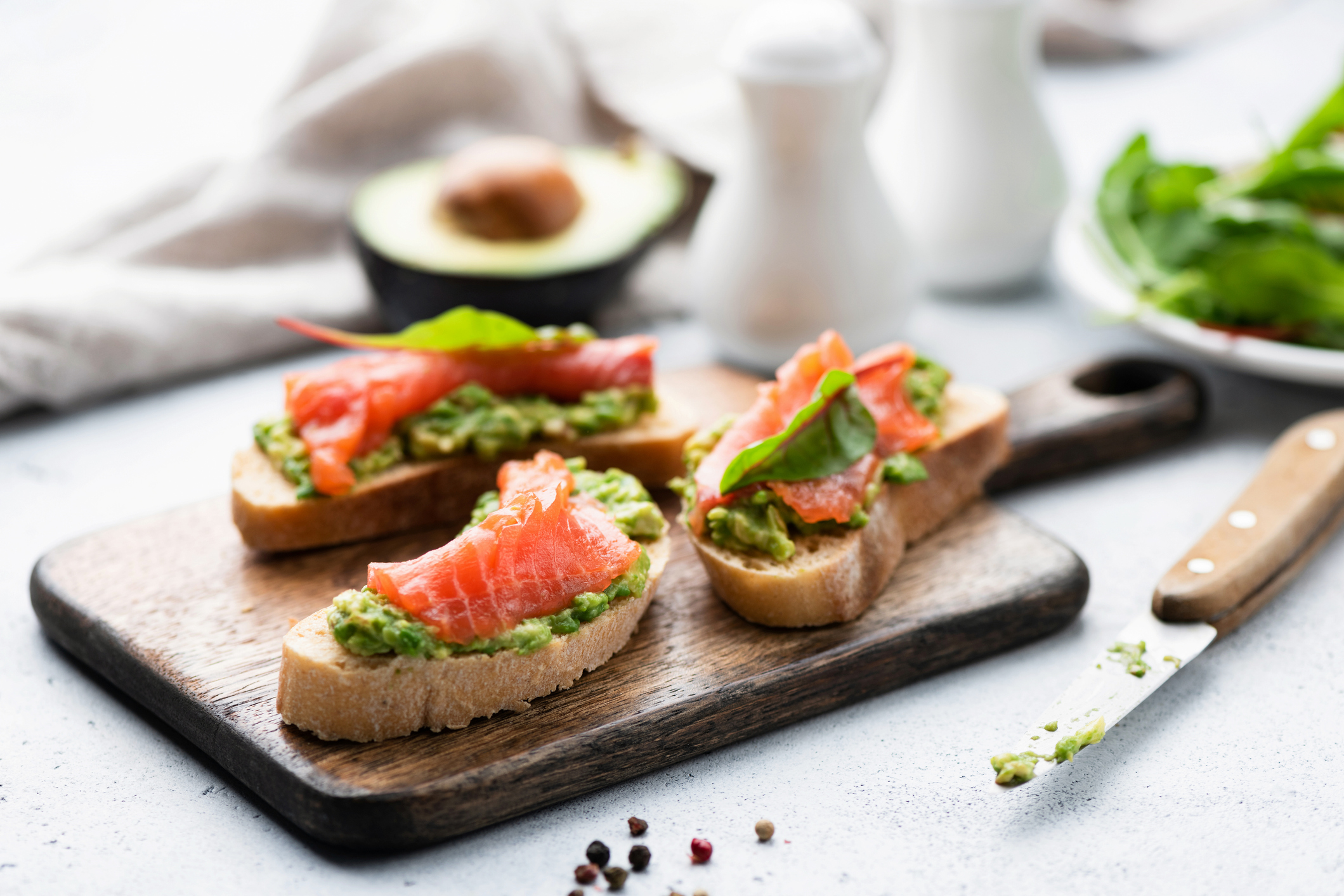 5. Tostadas de pan integral con aguacate y salmón