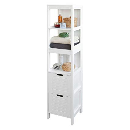 Incluye 3 estantes y 2 cajones para almacenar todo tipo de cosas y tiene un diseño elegante y funcional para tu baño. Se puede colocar en cualquier esquina o rincón.