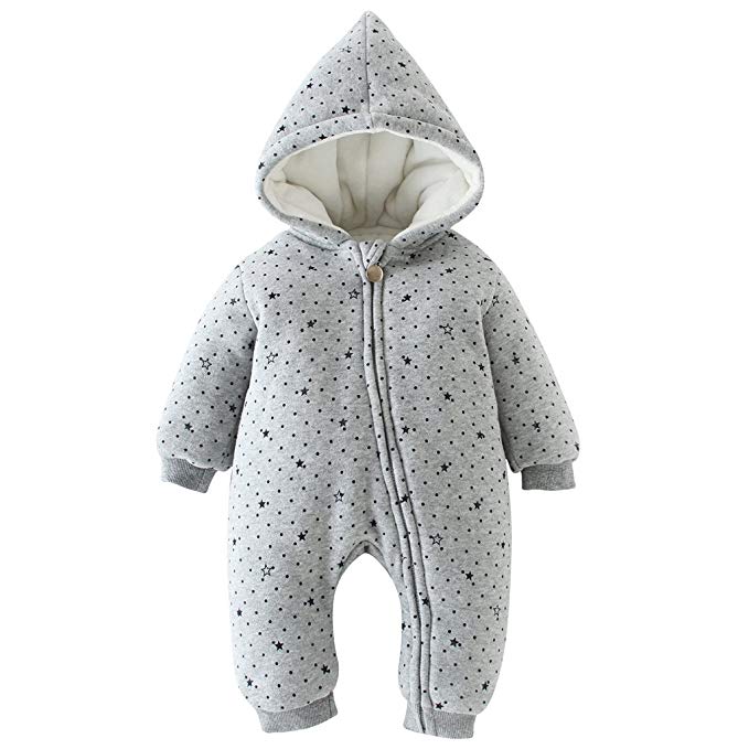 Traje entero para bebé acolchado con diseño de estrellitas y hecho de algodón. Calentito y muy cómodo y suave.