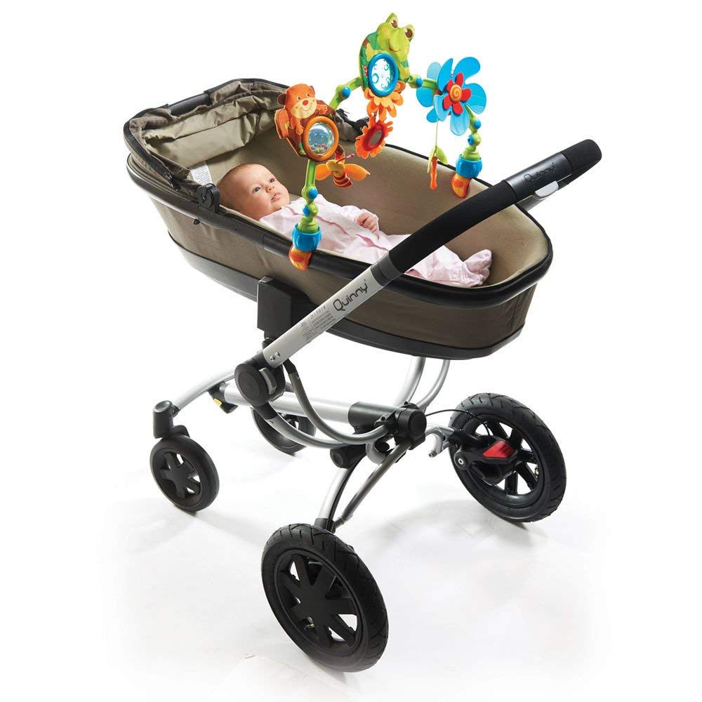 Este arco para el cochecito es perfecto tanto para recién nacidos como para bebés más mayores. Se engancha a los extremos del cochecito con un clip universal de fácil colocación y portátil.