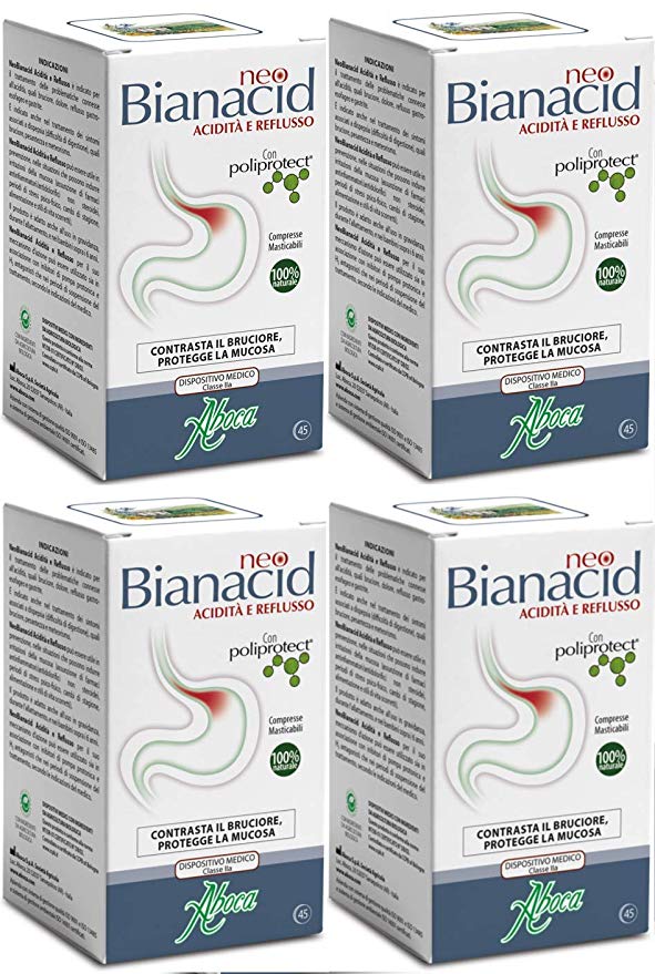 Bianacid, el complejo natural contra la acidez y el reflujo: Este producto es un compuesto de complejos vegetales y minarales que protege el estómago y cuida la mucosa intestinal para favorecer la digestión y evitar el ardor de estómago. Es 100% natural, biológico y muy eficaz para eliminar las molestias gastrointestinales. Tomate un comprimido de Bianacid cuando sientas molestias o después de una comida pesada, notarás como se desvanecen tras pocos minutos.