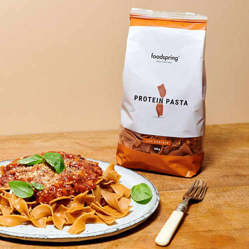 En cuanto al consumo de hidratos, es aconsejable reducirlo los días que no vayas a entrenar o sustituirlos por hidratos de carbono complejo (harinas integrales, por ejemplo). Si te encanta la pasta pero no quieres abusar, prueba la pasta proteica de Foodspring, tiene menos carbohidratos que la pasta tradicional, ya que está hecha a abse de proteína vegetal de guisante. De cada 100g, 50g son proteínas, mientras que solo 25g son hidratos de carbono. ¡Se acabó el renunciar a la pasta! Puedes comprarla en Foodspring por 4,99€.