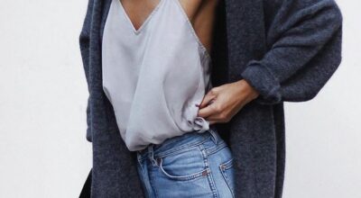 Los tops de seda de estilo lencero son prendas sensuales de aspecto delicado que se han convertido en algo que no puede faltar en el armario de una mujer. Podría decirse que ya son un fondo de armario. Para combinarlo correctamente, decántate por prendas desenfadadas, como unos vaqueros y un suave cárdigan XXL.