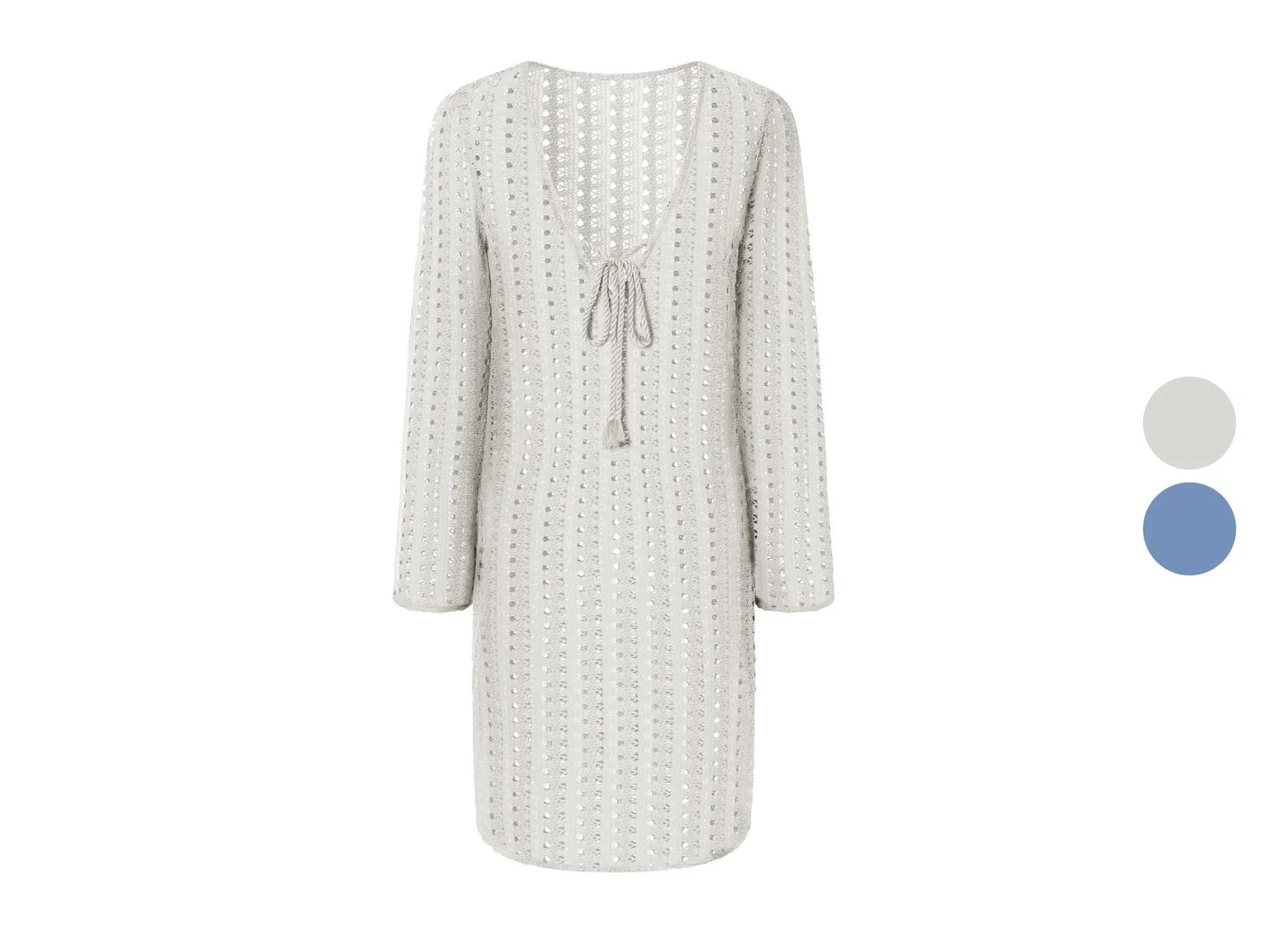 El vestido en cuestión que nos ha conquistado es el vestido túnica de encaje en color blanco. Es ideal para la playa, con cordón en el cuello cerrando el escote en V y mangas anchas y largas. También tienen el mismo modelo en azul, pero creemos que el blanco queda mejor para crear contraste con el bronceado, aunque puedes optar por llevarte los dos, ya que solo cuesta 7,99€. En la web de Lidl se venden por ahora todas las tallas, S (38/40), M ( 42744) y L (46/48), pero no dejes pasar la oportunidad y adelanta tu compra semanal antes de que se agoten.