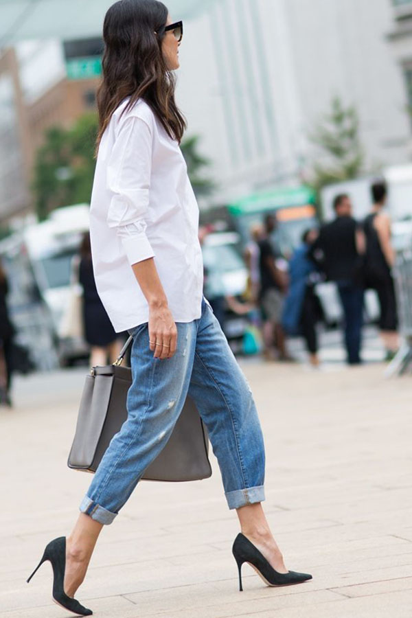 Para qué comprar “boyfriend jeans” cuando puedes llevar realmente los suyos, y lo mismo con los “mum jeans”. Combínalos con una camiseta y un jersey de pico de tu hermano. Si lo complementas con unos botines de tacón, tienes el look que estabas buscando. Compartir está de moda.