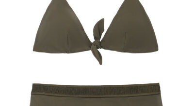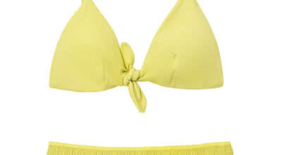 Y si queremos un bikini de volantes pero no buscamos añadir mucho volumen a ninguna zona, tampoco hay problema porque hay diseños en los que los volantes son muy pequeños. Otro truco que puede ser muy útil para compensar el exceso de volumen es elegir un color liso, ya que el estampado le añadiría aún más.
