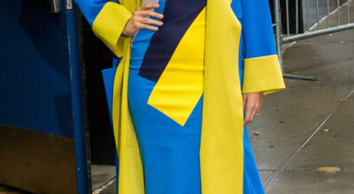 Acostumbrados a verla con los mejores looks de la pasarela, a veces incluso reinterpretados mejor que en los desfiles, nos sorprendió encontrar un mal look en el inmaculado expediente de la reciente mamá. Blake se atrevió con un mono trasparente con estrellas estampadas, de Monique Lhuillier, propio de las hermanas Kardashian. No nos gusta porque le hacía arrugas en las rodillas y nos parecía excesivo. ¡Menos mal que decidió llevar encima un abrigo masculino!
