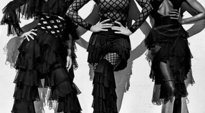 Entre las caras más fotografiadas está Gigi Hadid, quien posa junto a Natasha Poly y Raquel Zimmermann para Versace, Karlie Kloss, Kate Moss, Daria Werbowy y las míticas top models Naomi Campbell, Claudia Schiffer y Cindy Crawford.