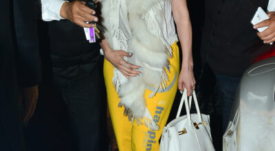La elección fue extraña, parecía que había venido en pijama o incluso que se había disfrazado. Jennifer Lopez se presentó con un dos piezas de Emmanuel Ungaro que incluía un pantalón alto y un crop top estilo camiseta. Para completar el look, JLO optó por unos salones dorados y negros, de Jimmy Choo, y una coleta alta al más puro estilo Alaska en los ochenta.