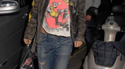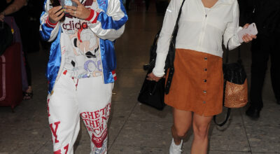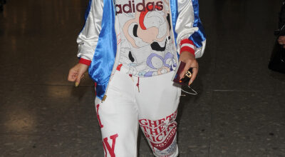 Rita ha demostrado que es una joven talentosa, atrevida y descaradaque no hace ascos a llamar la atención a base de atuendos estrafalarios. Las terminales de un aeropuerto londinense fueron testigos mudos del desfile que ofreció la cantante enfundada en un chándal de su colección. Esta vez optó por un pantalón de felpa, de esos con gomilla en el tobillo, estampado con letras XL aptas para miopes. Su camiseta de algodón nos hace recordar una de las tendencias estrella de la temporada: la logomanía, que reivindica la vuelta de los logos estampados en versión maxi, ¡que se note! Por supuesto, reverencia ante la reina de corazones del 2016 que no podía faltar en un estilismo de tal magnitud: la bomber satinada pone el punto de sofisticación a este look que no hay por dónde coger. Unas sneakers blancas con calceto azul, ponen la guinda a este desastroso pastel de sabor deportivo.