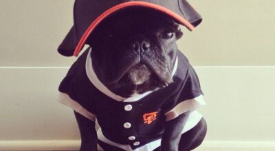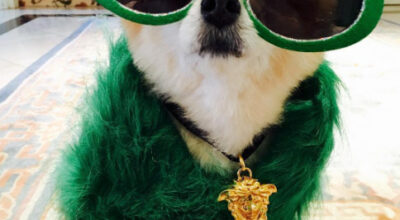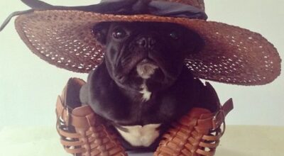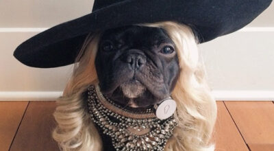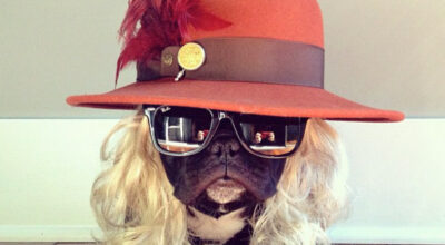 Este bullgog lleva desde zapatos de tacón de Louboutin hasta sombreros de ala ancha. Un perrito al que le gusta disfrazarse.
