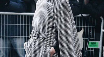 El look compuesto por un vestido corto de cuadros vichy, con capa del mismo estampado, pantalones de piel de corte slim y botas de caña alta, no eran lo más adecuado para esa tarde. Debajo del vestido asomaba un tímido jersey de cuello alto negro y como colofón final el sombrero estilo jockey.