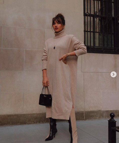 Los looks de una sola pieza son lo más cómodo que hay, especialmente si se trata de vestidos de punto, largos y nada ceñidos que te dejan libertad de movimiento pero que te mantienen calentita y elegante. Si eres friolera, puedes completar el outfit con unas calcetas a la rodilla, que eviten que cojas frío en las piernas pero que no te aprieten por ningún lado como a veces pasa con medias y leotardos. También puedes elegir un vestido que sea de cuello vuelto para un resultado aún más calentito.