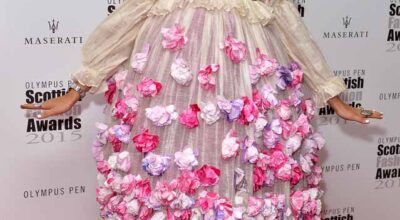 Tremenda ha sido la sorpresa que nos hemos llevado esta mañana cuando hemos encontrado el look de Tallia Storm durante los Scottish Fashion Awards. Un vestido cubierto de pétalos de flores, cold shoulder, con volantes en las mangas y el escote. Como habéis podido comprobar, viendo las imágenes de arriba, la joven cantante nos tiene bastante acostumbrados a sus llamativos looks. Su pelo afro guarda un parecido más que razonable con el de los muñecos Troll.