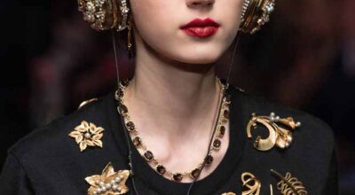 –Pendientes enormes en metales preciosos, cristales o plástico. El color por excelencia es el dorado. Fíjate en Marni, Moschino, Missoni o Giorgio Armani.