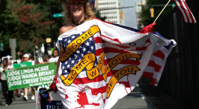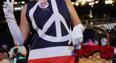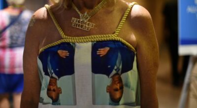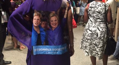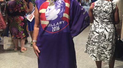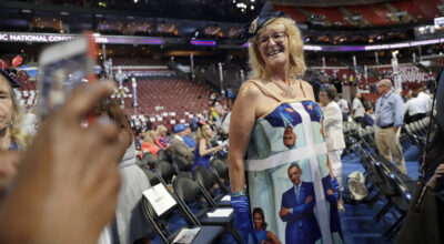 Este año, en la Convención Demócrata de Filadelfia, han desfilado gorros antiTrump y vestidos de Hilary Clinton. Los delegados no han dudado en lucir los disfraces más estrafalarios para demostrar su tendencia política. Una de las más entusiastas ha sido Kelly Jacobs, que ha llevado en su maleta seis vestidos en los que ella misma ha cosido fotografías de los Clinton o de los Obama. Sí, como lo oyes, ella misma es la diseñadora de las prendas. Y aunque admiramos su pasión por unir moda y política, se ha ganado el puesto a peor look de la semana. Echa un vistazo a la galería. ¡No tiene desperdicio!
